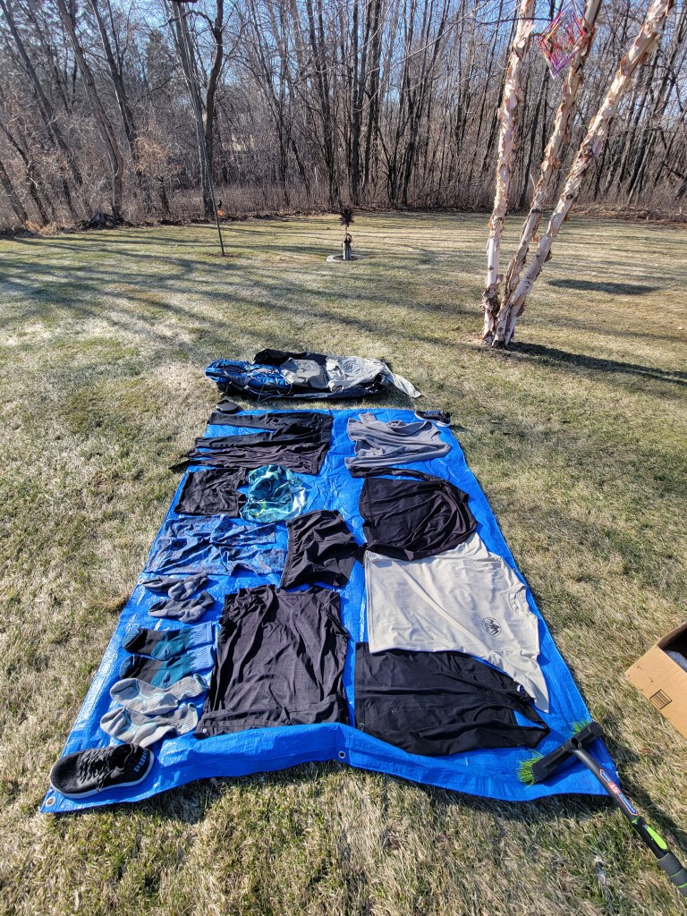 And of course treated my clothes and pack with permethrin, a tick preventative….yes, I know I probably have too many clothes to start, but I was really cold at the start last year!!!