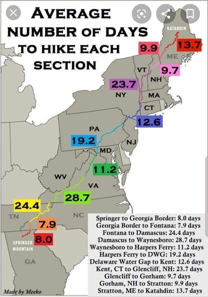 I definitely won’t be pushing myself to complete the trail faster than my body will allow! (This map does not include nero (short hiking day miles) or zero days, however!)